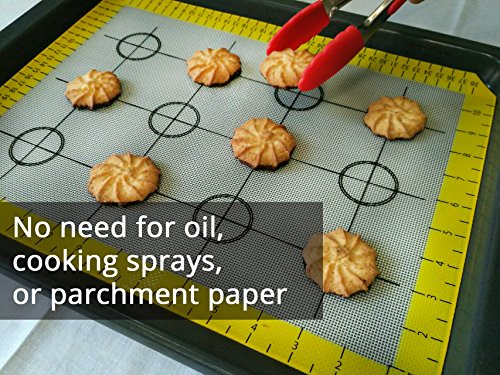 Non-stick& Easy-to-clean: No more scrubbing! Even burnt sugar and fat falls off on itson. Just rinse the mat in warm soapy water to clean it. You can also wash it in your dishwasher. Repeated multiple uses and washing cycles do not affect non-stick properties of the mat. After every use and cleanup, it will be just like new again.