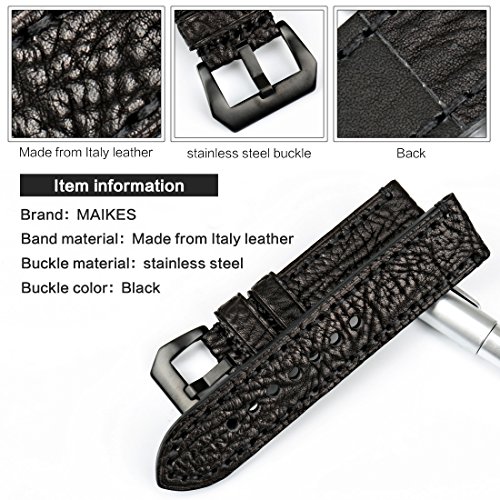 -. Feature : Premium Quality: Italy imported Leather & Vintage Greasedleather,oil wax skin / leather watch strap & 316 stainless steel buckle with antique and nostalgic look. Comfortable & breathable texturePremium Quality: Italy imported Leather & Vintage Greasedleather,oil wax skin / leather watch strap & 316 stainless steel buckle with antique and nostalgic look. Comfortable & breathable texture / Classic Design: This leather watch bands with a decent look fits well for both business and casual occasions, It is never out of fashion / Adjustable Length: One size fits most wrists. 7 closely strap holes. Compatible with famous & traditional & smart watches that uses 22mm, 24mm or 26mm sP.R.Ing bars / Delicate Craftsmanship -- The watch replacement band is made of 3 layers include surface leather, thickening layer and bottom layer; Leight weight and durable for use / Watch Leather Straps from MAIKES are made with meticulous craftsmen. We focus on every details to serve you