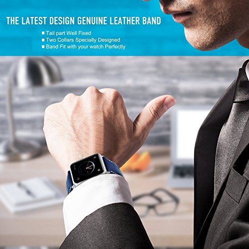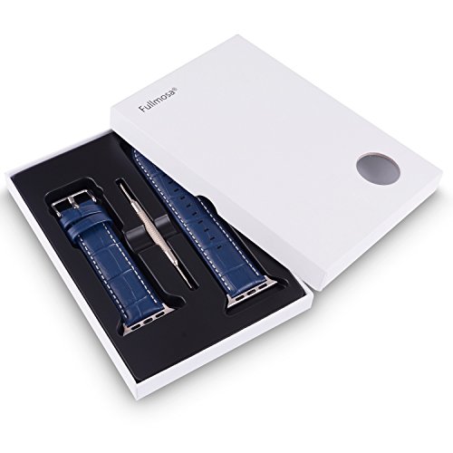 Apple Watch Bands 42mm, Fullmosa Bosin Series Calf Leather Replacement Band/Strap with Stainless Steel Clasp for Apple iWatch Series 1 & 2 Sport and Edition Versions 2015 2016,Dark Blue