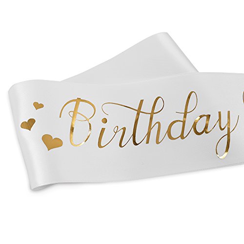 -SUPER VALUE: This "Birthday Queen" sash is made of white satin fabric, super pretty with gold font. Sash comes ready to wear.