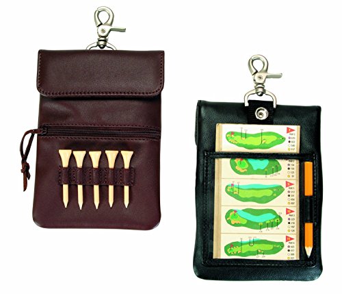 Studio : ROYCE LEATHER Publisher : ROYCE LEATHER Binding : Misc. Product Description Royce Leather Clip-on Golf Accessory Bag keeps tees, divot tool, ball markers and scorecard organized in style. Top-grain Nappa leather Bag for the distinguished golfer. Features 5 slots for tees, zippered pocket for divot tool and ball markers, and VELRCO Brand closure for your valuables. Back has a framed window pocket for scorecard and a pen/pencil loop. Pewter swivel clip on top. Measures 7 x 4 3/4 x 1/2". Imported. Accessories not included. State Color. Order yours today! Royce Leather Clip-on Golf Accessory Bag 0