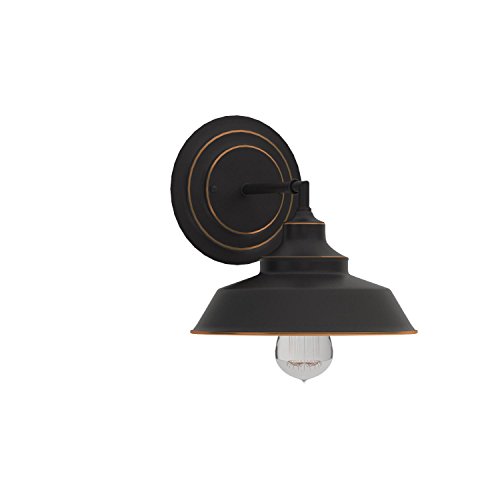 Industrial yet vintage, the Westinghouse iron hill One-Light wall fixture is perfect with any design style, from modern to Farmhouse. Oil rubbed bronze finish with rich bronze highlights on metal shade adds a Rustic Farmhouse appeal. Install this wall fixture in the bathroom, vanity or bedroom for a refined touch. Wherever you install it, you will enjoy the fixture's straightforward style and welcoming light. The iron hill three-light wall fixture is 7-7/8 inches in height by 8-11/16 inches wide. It extends 9-5/8 inches from the wall. It uses one medium-base bulb, 60-watt maximum (not included). this indoor light fixture is ETL/cetl listed for safety and is backed by a five-year limited manufacturer's warranty defects in materials and workmanship. Westinghouse is a global brand with a simple philosophy: make life easier for everyone who buys its products. Westinghouse products are designed for exceptional quality, reliability, and functionality. Product reference Number 63435.Feature