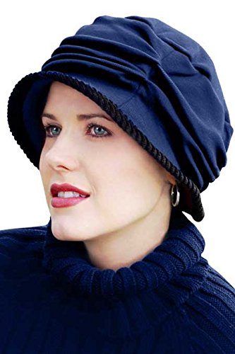 -. Feature : Made in the USA. / Soft and warm for wearing in cooler weather. / Fashionable cordouroy trim detailing. / Full head coverage for women with hair loss. / Several color choices available.