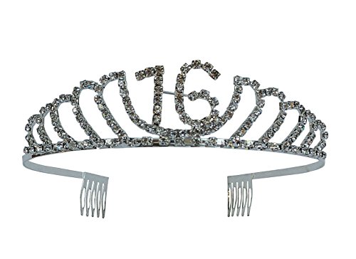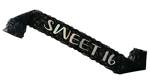 This 16th Birthday Party Kit includes: one rhinestone tiara, one lace sash, and one durable cardstock banner.