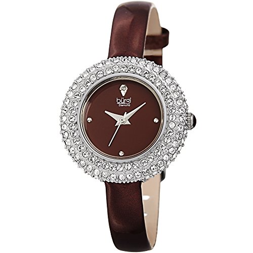 Crafted from the finest materials and inspired by the modern fashion industry, this Burgi timepiece displays an incredible presence of prestige and luxury. The entire case is studded with Swarovski crystals in seamless clusters, leaving a sliver of yellow gold tone bezel to affix the protective crystal lens. The delicately crafted ruby red dial is adorned with hand-applied markers, including a single genuine diamond at the 12 o'clock position. Inside, a highly advanced quartz movement ensures top notch accuracy and reliability in its classic three-hand timekeeping. Color-coordinated to match, this watch is accented with a scarlet enamel cabochon on the ground and outfitted with a glossy red genuine leather strap.Feature