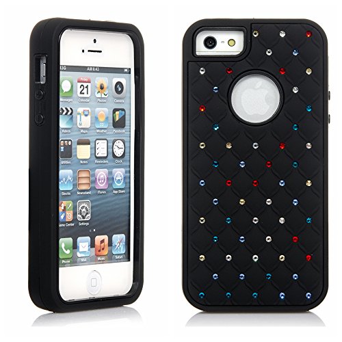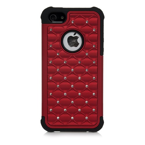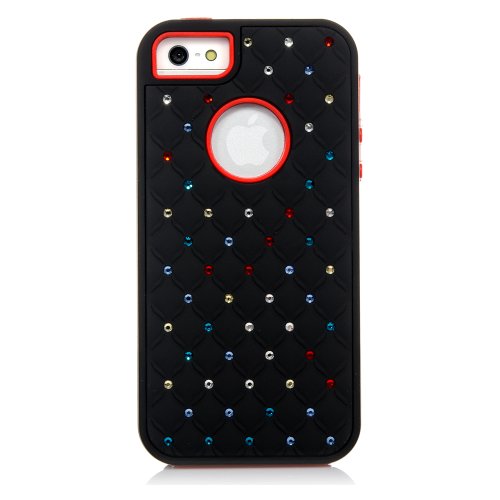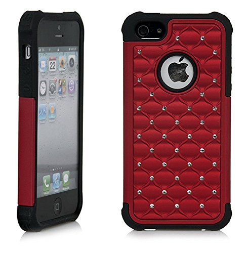 iPhone SE,iPhone 5S Case, iPhone 5 Case,iSee Case (TM) Luxurious Hybrid Dual Layer Lattice Total Defense Bling Rhinestone Diamond Full Cover Case for Apple new iPhone SE iPhone 5 iPhone 5S (5-Star Red on Black)