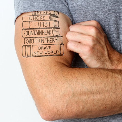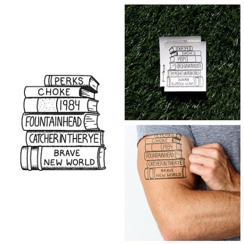 Classic Book Stack Temporary Tattoo (Set of 2)