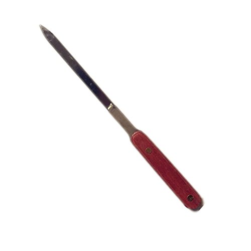 - Portable letter opener with steel blade and rosewood handle.