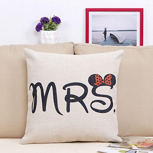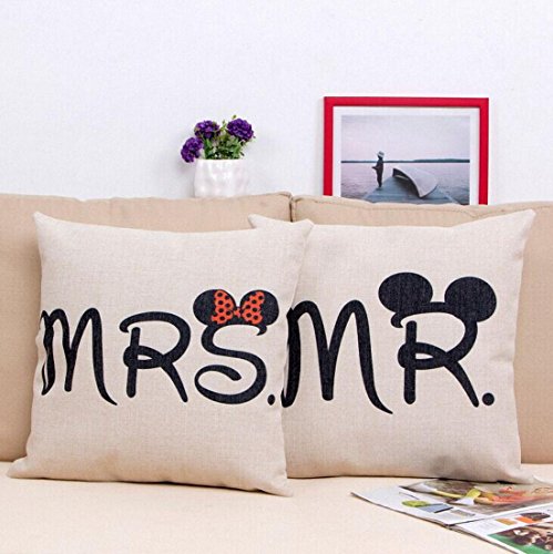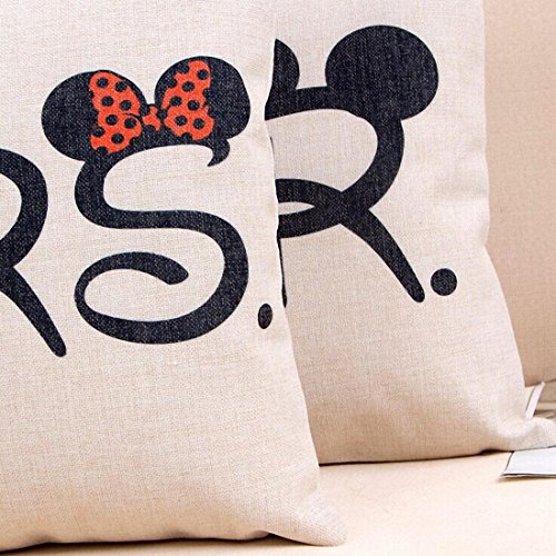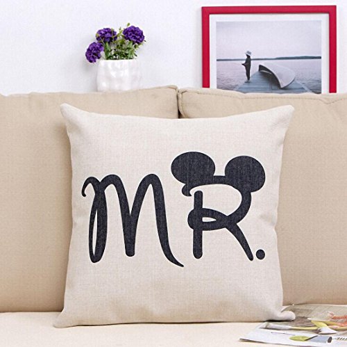 E-sunshine® Cotton Blend Linen Square Throw Pillow Cover Decorative Cushion Case Pillow Case 18 X 18 Inches / 45 X 45 cm, Disney (Mickey & Minnie)