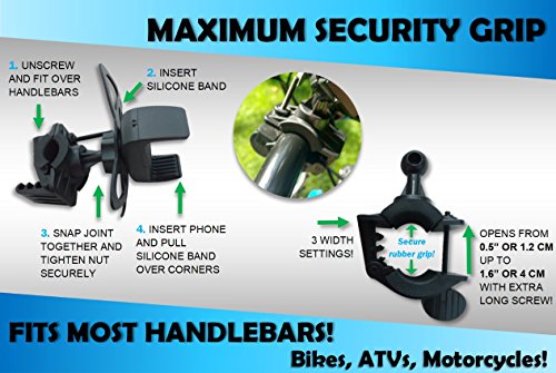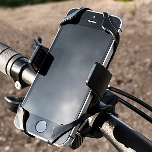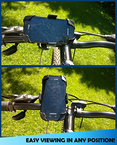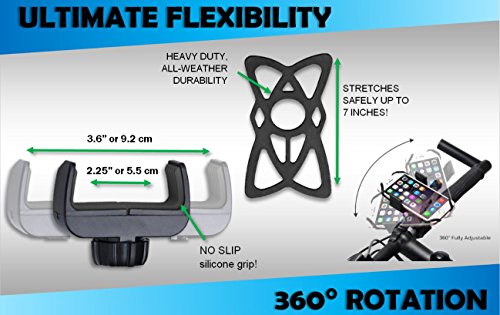 Universal Bike Phone Mount - iPhone 5 6 6S 6S Plus & 7 Plus, Galaxy S7 S6 S5, Android - Up to 3.6" Wide - 360 Degree Rotation - Handlebar Adjustable for Bike, ATV, Motorcycle - Secure Silicone Straps