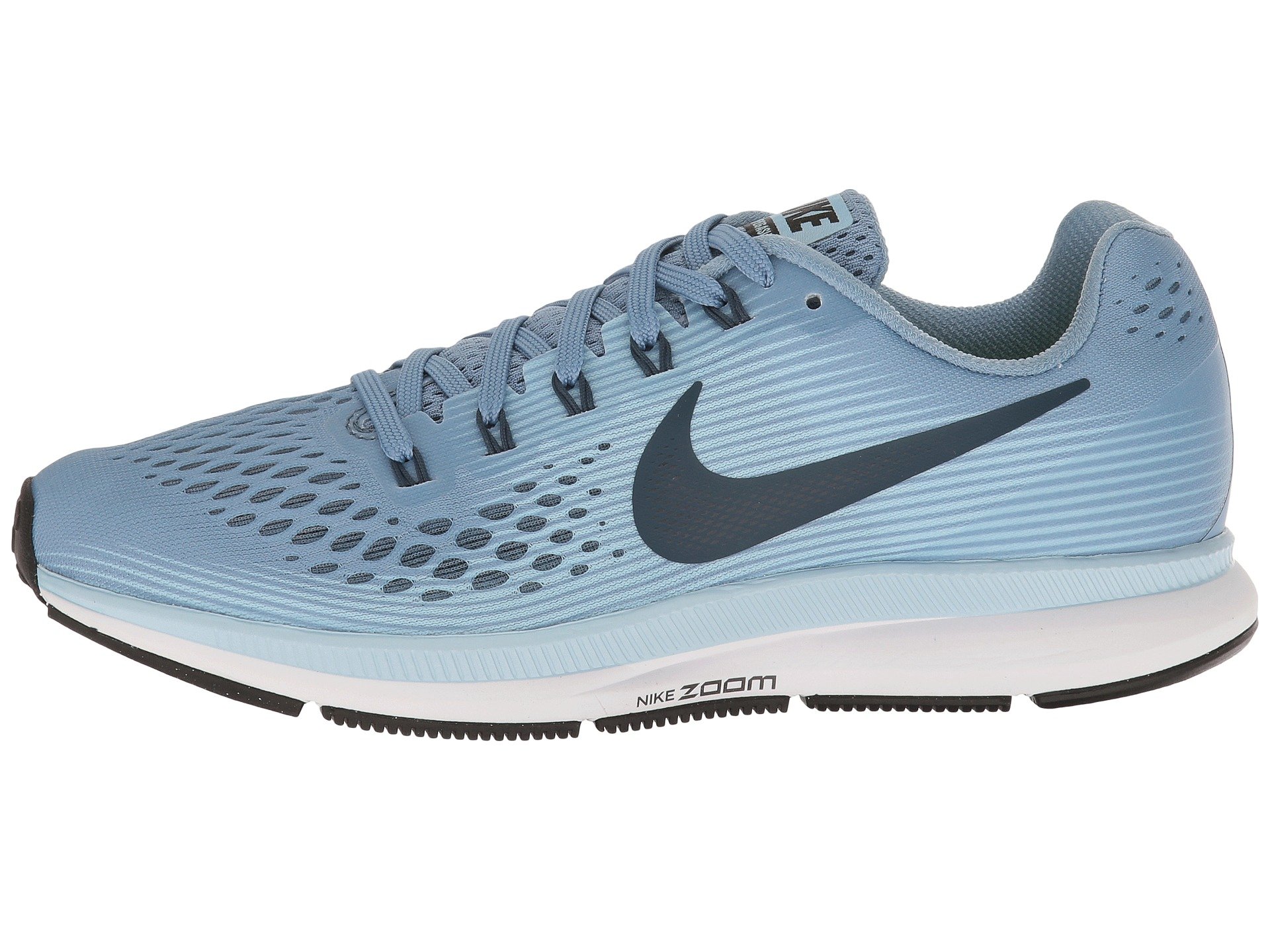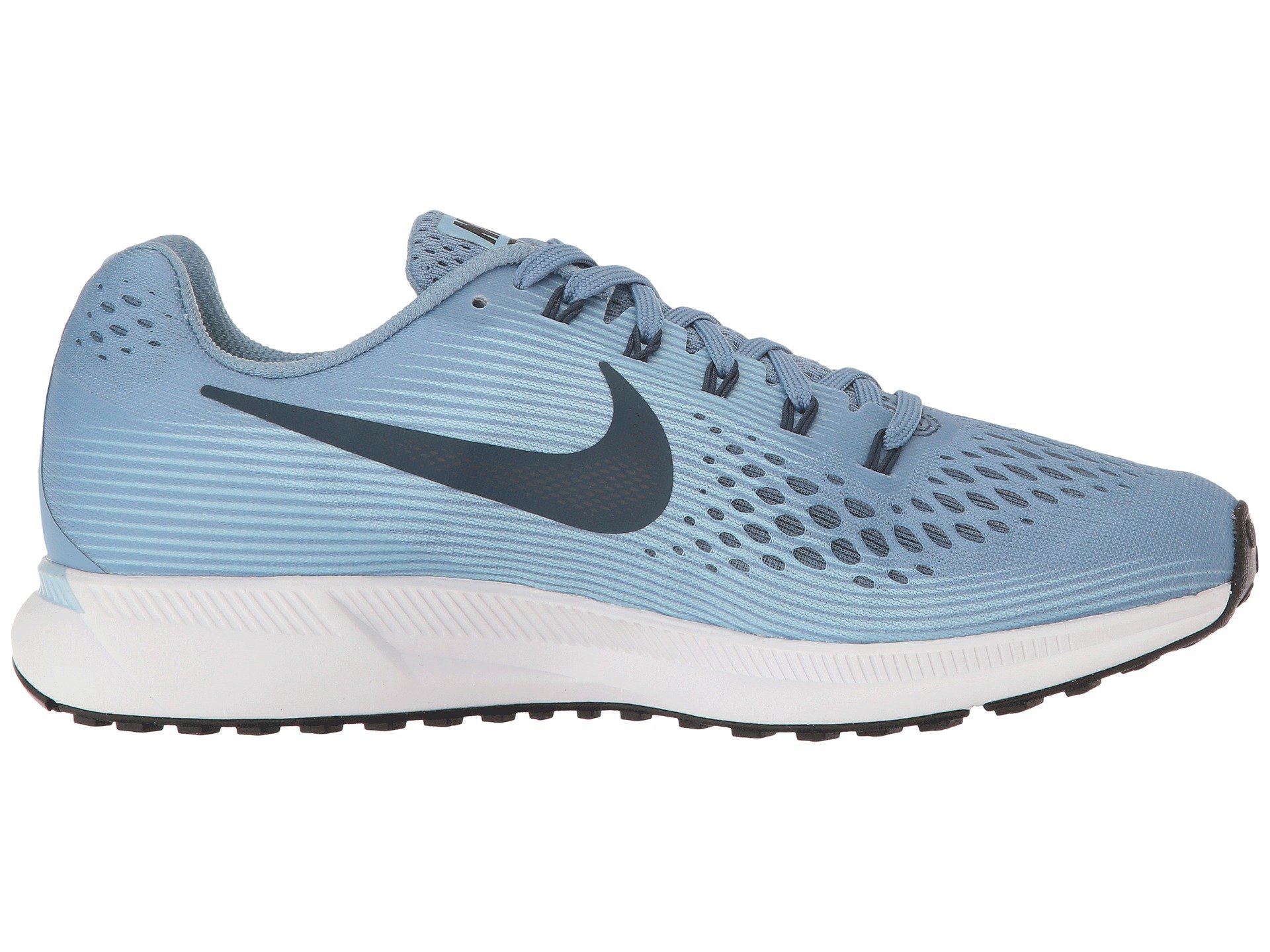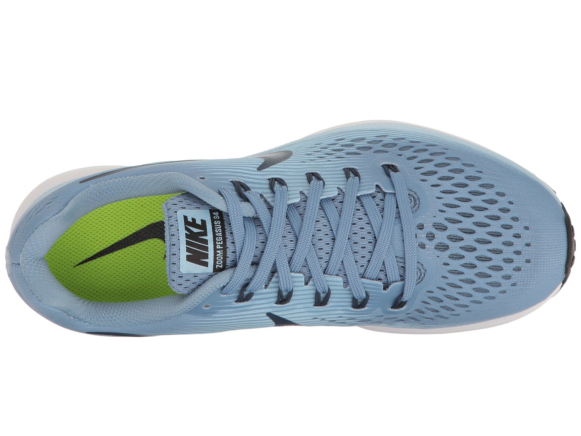 | Product Information SKU: #8833948Take to the pavement with the Air Zoom Pegasus 34. With an improved Flymesh upper, enhanced breathability and responsive cushioning, your miles will go on further and smoother with Nike. Predecessor: Air Zoom Pegasus 33.Support Type: Neutral to underpronation (supination).Cushioning: Light, flexible response. Surface: Road. Differential: 10 mm.Seamless Flymesh upper is breathable and lightweight to help promote cool, long runs. Lace-up closure with Dynamic Flywire cables lock in feet for a secure fit.Lightly padded tongue and collar. Fabric lining for a great in-shoe feel. Firm heel counter offers stability.Cushion foam and Zoom Air in the forefoot offers a responsive, energy-returning bounce with each step.Rubber crash rail on lateral outsole helps with a smooth ride.Raised rubber is shock-absorbing and helps with traction.Waffle pattern outsole has small cuts to promote flexibility while offering multi-surface traction and added durability. Imported. Product measurements were taken using size 8, width B - Medium. Please note that measurements may vary by size.Weight of footwear is based on a single item, not a pair.Measurements: Weight: 8.5 oz |
