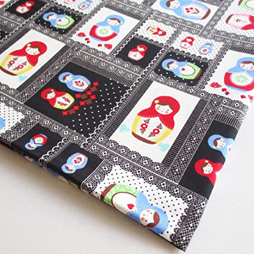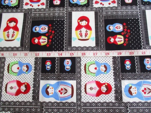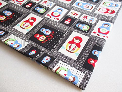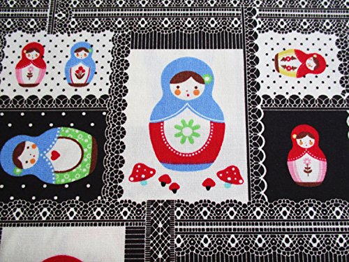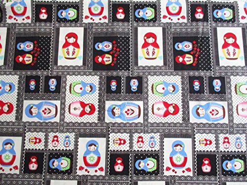 Russian Doll, Matryoshka in patchwork style, Russia doll, Black Cotton with cute Dolls 36 by 36-Inch Wide (1 Yard) (CT559)