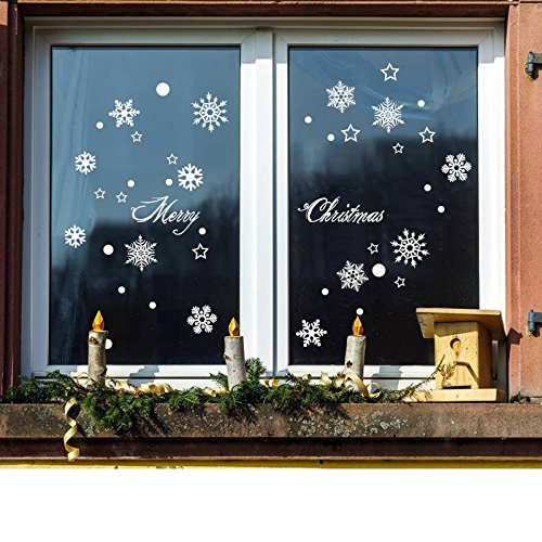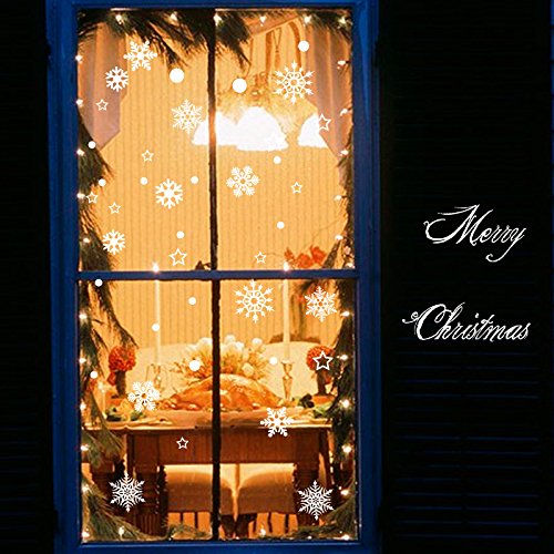 Snowflakes Christmas Wall Stickers Decorations Removable art Decor DIY Christmas Tree Wall Decal for Christmas Wall Living room Bedroom Shop Windows Showcase (A)
