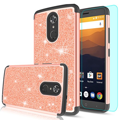 -. Title : ZTE Max XL Case,ZTE N9560 Case with HD Screen Protector for Girls Women,LeYi Luxury Glitter Cute Design [PC Silicone Leather] Dual Layer Protective Phone Case Cover for ZTE Max XL / N9560 - Rose Gold
