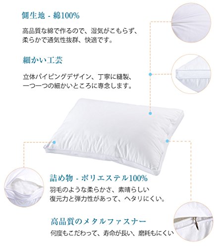 "Size and specifications" Body size 69 × 48cm, also hit the pillow cover 50 × 75cm rolling over, is the pillow of hard wide width which fell the head. Gifts, with a zipper is also very popular is ♪ "OK washed" the body as a gift, in the home can be washed, maintains the integrity always clean. You can not never deformation even with in a long time, as new even I wash many times. Long-term warranty of one year on the durability of the pillow body. "Three-dimensional structure" softness and high resilience to both structures, such as feathers, there is a great resiliency and elasticity, to reduce the sinking of the body, firmly support the large neck and shoulder the burden, sleeping in the ideal posture you can achieve. Because it contains plenty of cotton to the "height-adjustable" pillow, you can also height pillow that fit to their by and out of the cotton freely produces. "Excellent ventilation" side Fabric: 100% cotton, padding: Since we have been using the polyester cotton excellent ventilation of polyester cotton, you do not have to worry about even for easy person to sweat. At any time you can comfortably use. It is soft fluffy pleasant - sleep pillow of a strange feeling not to until now. Softness and high resilience to both structures, such as feathers, there is a great resiliency and elasticity, firmly support the neck and shoulder, takes effect may be to stiff neck.