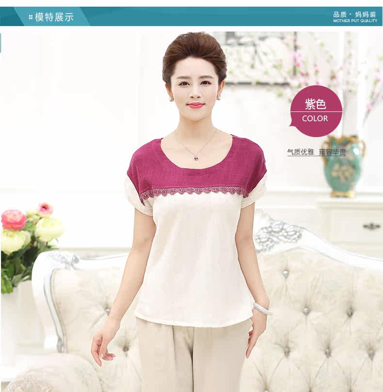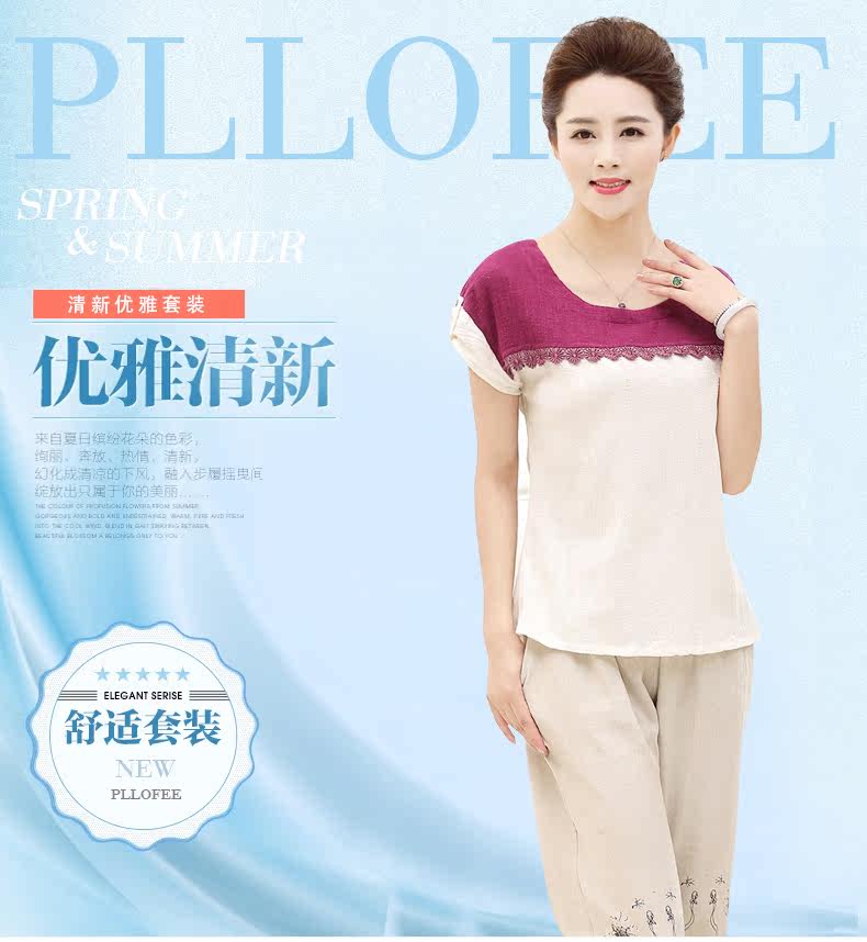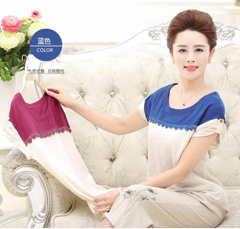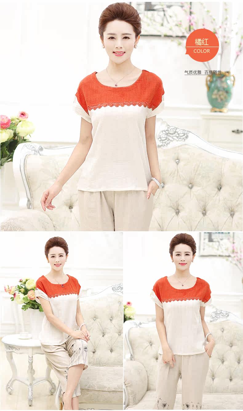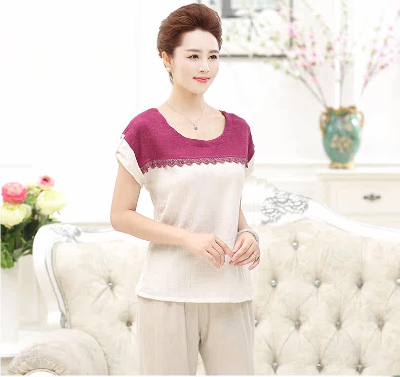 中老年女装夏装套装40-50岁妈妈装T恤裤子两件套中年女装短袖套装