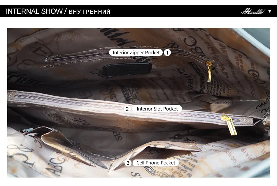 Interior:Cell Phone Pocket,Interior Slot Pocket,Interior Zipper Pocket