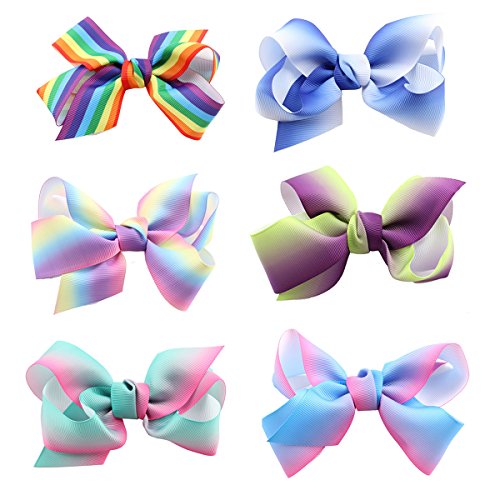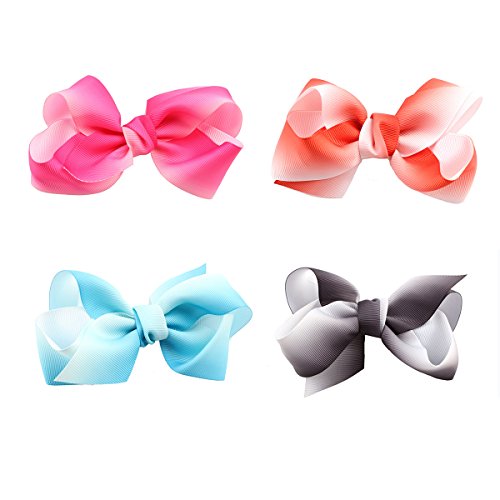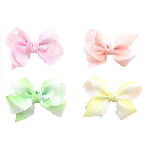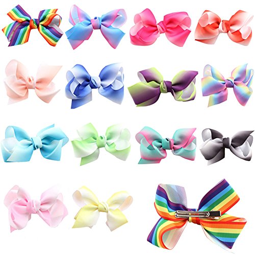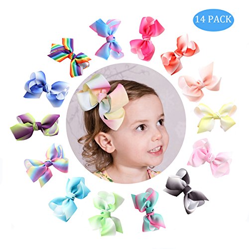 * Colorful and bright assorted hair bows with alligator clips and grosgrain ribbon * Deft handcraft and durable construction, soft ribbon fabric and quality metal clip * Value packed comes 14 pieces different bow clips lighting up your everyday outfit * 4.5" Pigtail ribbons and 2.4" barrette clip, stay up non slip even works well with infant thin hair * Amazing hair accessories for baby girls toddlers, kids, teenagers, young women