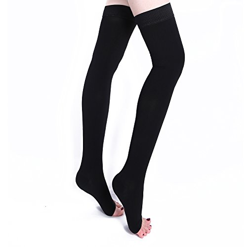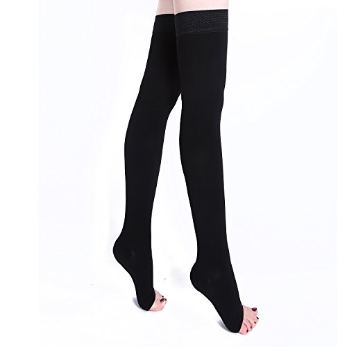 Catecool Compression Stockings Thigh High Open Toe 15-21 mmHg Black Medium