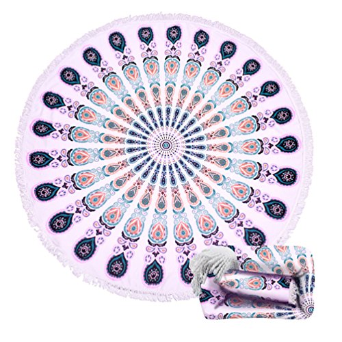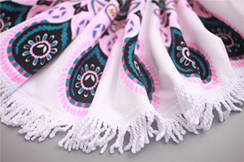 BEACH TOWEL FOR TWO PERSONS: Diameter is about 60” with tassels, the size can for 2 persons comfortably. With our round, XL oversized towel, you have room to snuggle up with your families and pets.