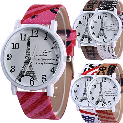 -. Feature : Package included: 5pcs wristwatch in difference color / Luxury Brand Fashion Eiffel Tower Vintage Leather Quartz Watch Women Ladies Wrist Watches / Band Length:23cm(9inch) Case Diameter:3.8 cm(1.5inch) / Good ideas for gifts as Christmas New Year Birthday Anniversary Wedding
