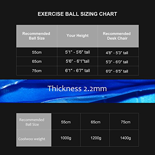 Studio : Coolwoo Publisher : Coolwoo Binding : Misc. Product Description With quality PVC, Coolwoo exercise ball is best in anti-burst and smell free. A Coolwoo yoga ball could support 660lbs without any problem. Even over load or break accidentaly, the ball would never burst suddenly. It will deflate gently. The texture design on the surface make it stable when you doing exercise. Do not worry that the ball would go away. 0