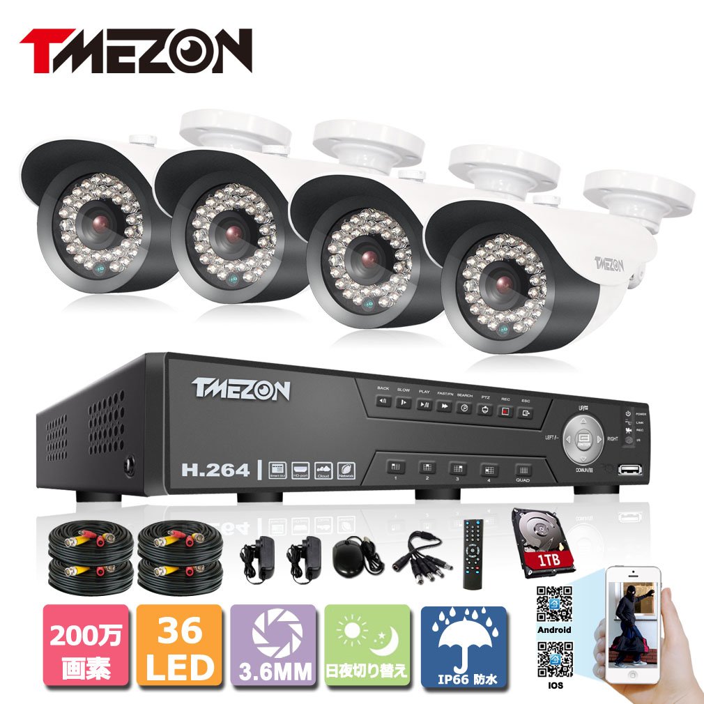 4 cameras + 4 ch 1080 N recorder (with 1 TB HDD)