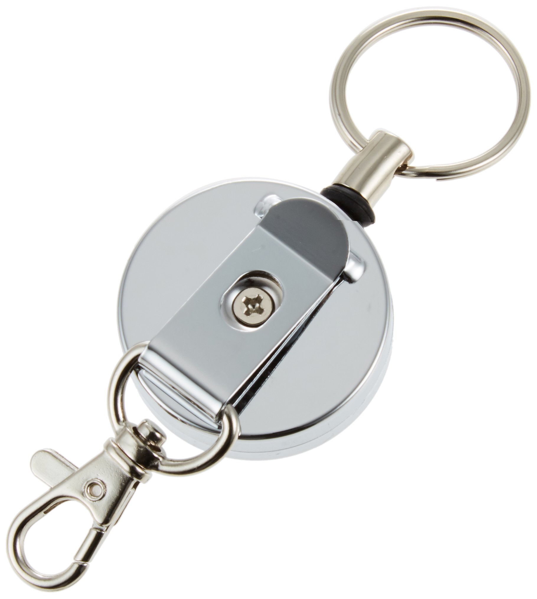 Built-in stainless steel wire stretched as it is attached to the belt, reaching the keyhole extendable key holder.
