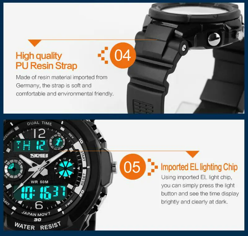 Feature:Alarm,Back Light,Water Resistant,Repeater,Stop Watch,Complete Calendar,Multiple Time Zone,Chronograph,Auto Date,LED display
