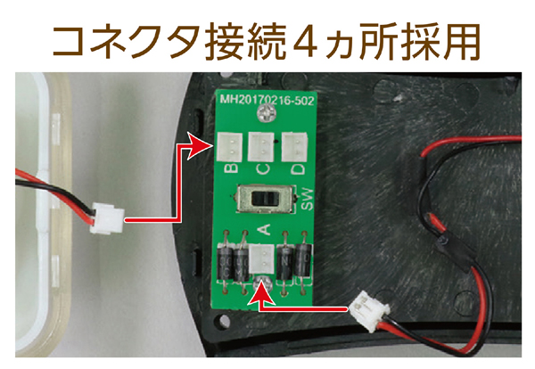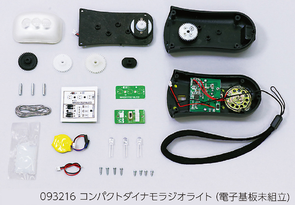 ●セット内容:レンズ×1、モーターパーツ×1、ギヤボックス×1、本体×1、ギヤ×3、スイッチカバー×1、ギヤ用軸×3、はんだ×1、電子部品台紙×1、LED基板×1、スイッチ基板×1、グリス×1、リチウムイオン電池×1、LED基板用導線×1、LED×3、本体用ネジ(ネジ長)×4、基板用ネジ(ネジ短)×4