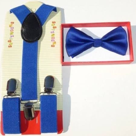 - CUTE ROYAL BLUE Baby Toddler Kids Children Boys & Girls Y-Back Elastic Suspenders and Bowtie Set Size