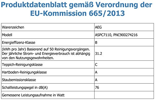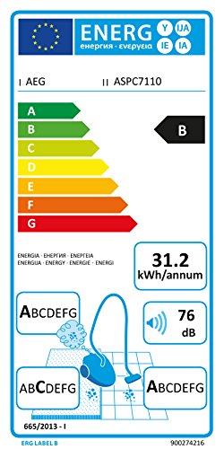 -. Title : AEG Performer Cyclonic ASPC7110 Staubsauger ohne Beutel (800 Watt, DustPro Silent Bodendüse, Softräder, waschbarer Hygiene E12 Filter, beutellos) blau