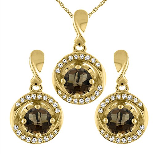 -. Title : 14K Yellow Gold Natural Smoky Topaz Earrings and Pendant Set with Diamond Accents Round 4 mm