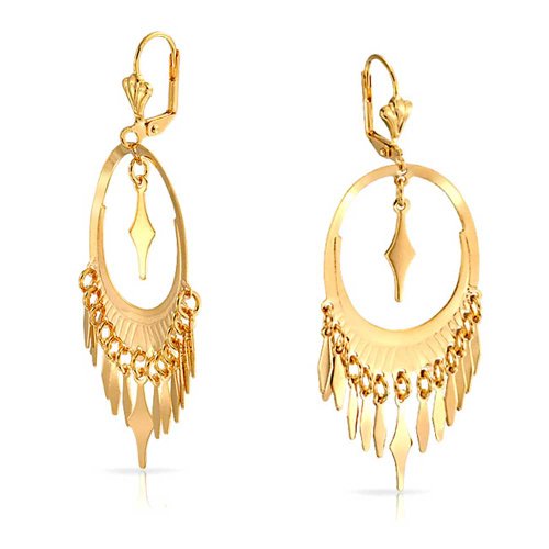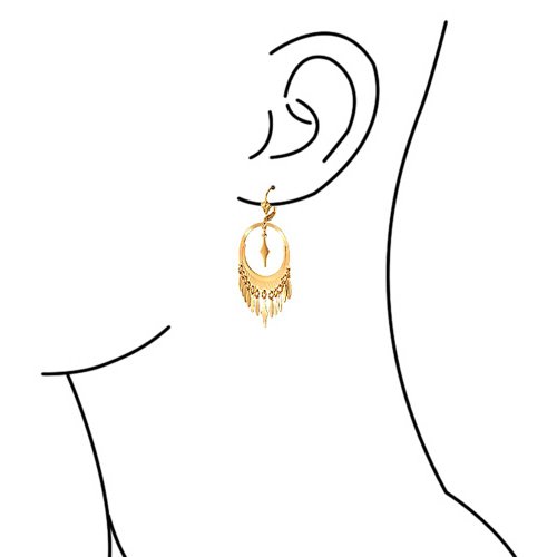 -. Feature : Large Oval Fringed Statement Earrings / For Pierced Ears / Material: Gold Filled / Measure: 2.50 in L x 1 in W / Weight: 5.62 gram