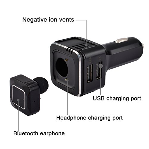 Dual USB Car Charger, Dual Car Charger,Bamett Car Air Purifier Bluetooth Headset for iphone X/8/7/6 plus,ipad,Samsung,HTC (black)