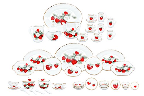 -. Title : 50 Pieces Porcelain Dollhouse Strawberry Dinner Service Set Kitchen Accessories