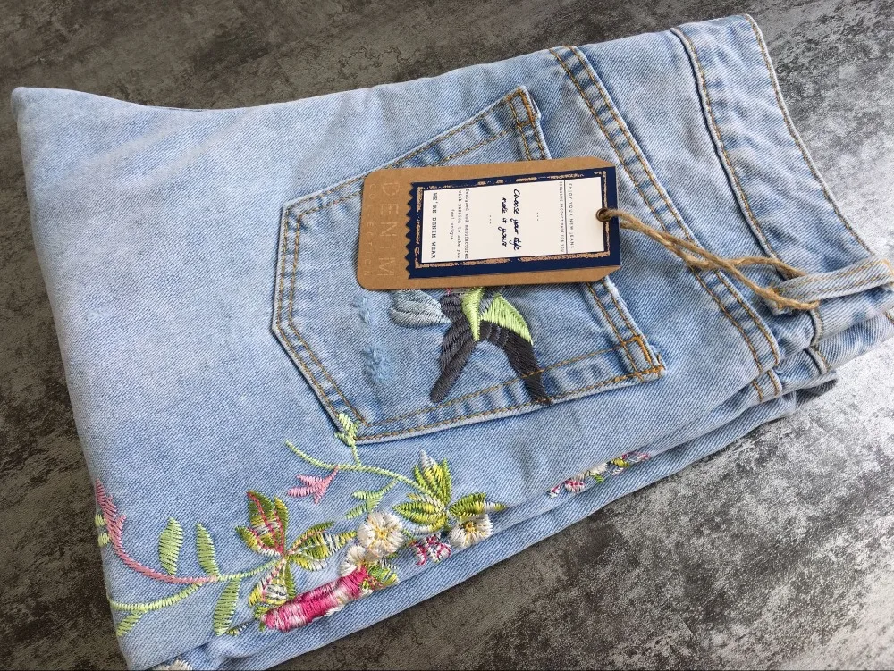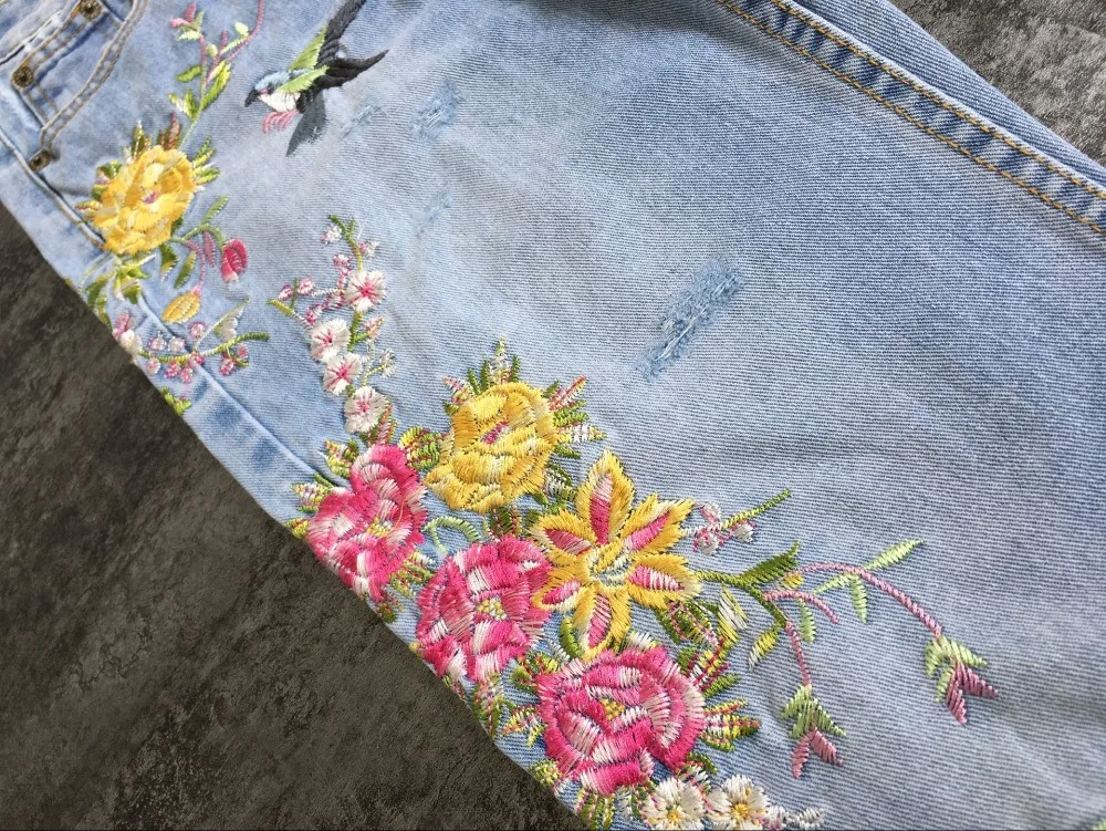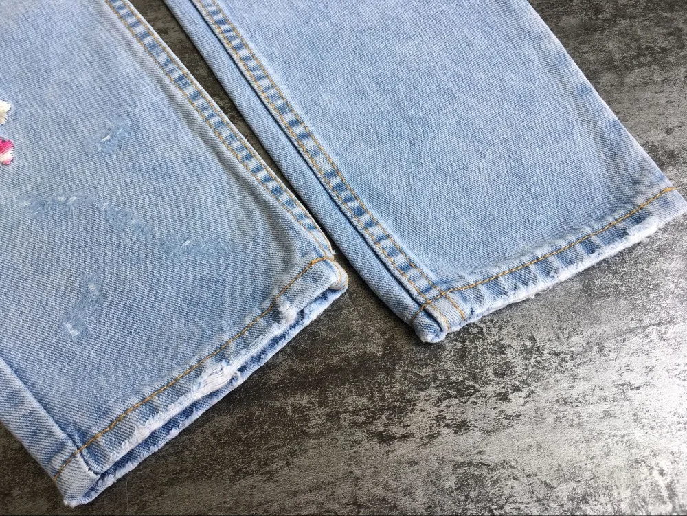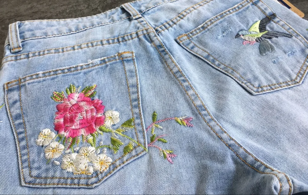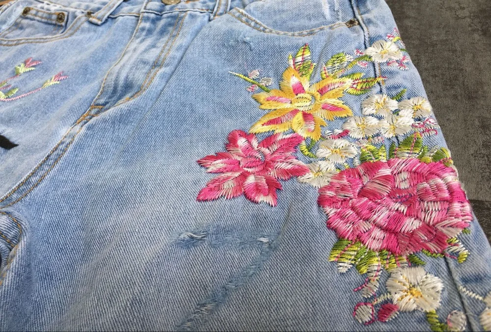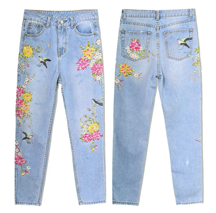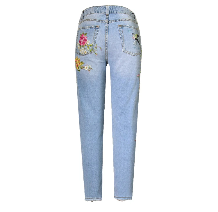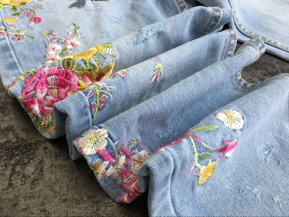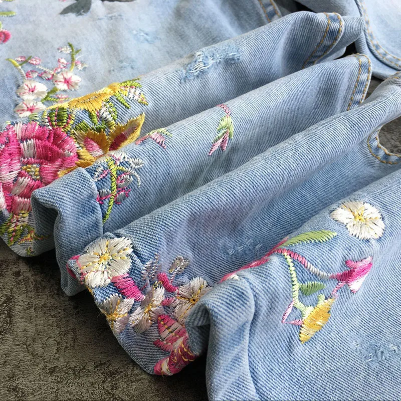 Item:3D Floral Embroidery Denim Pants