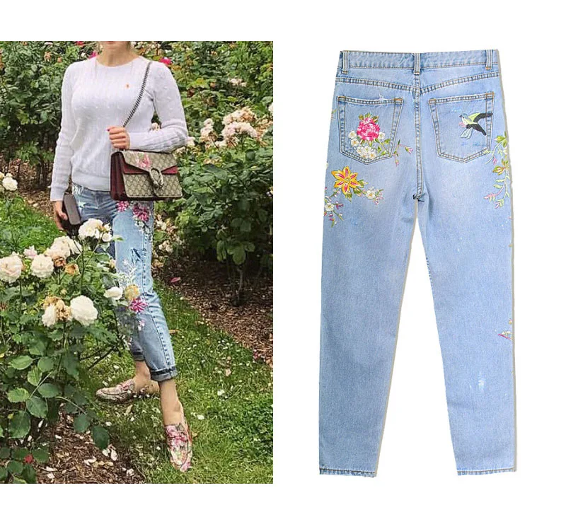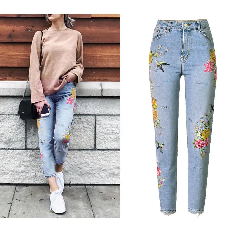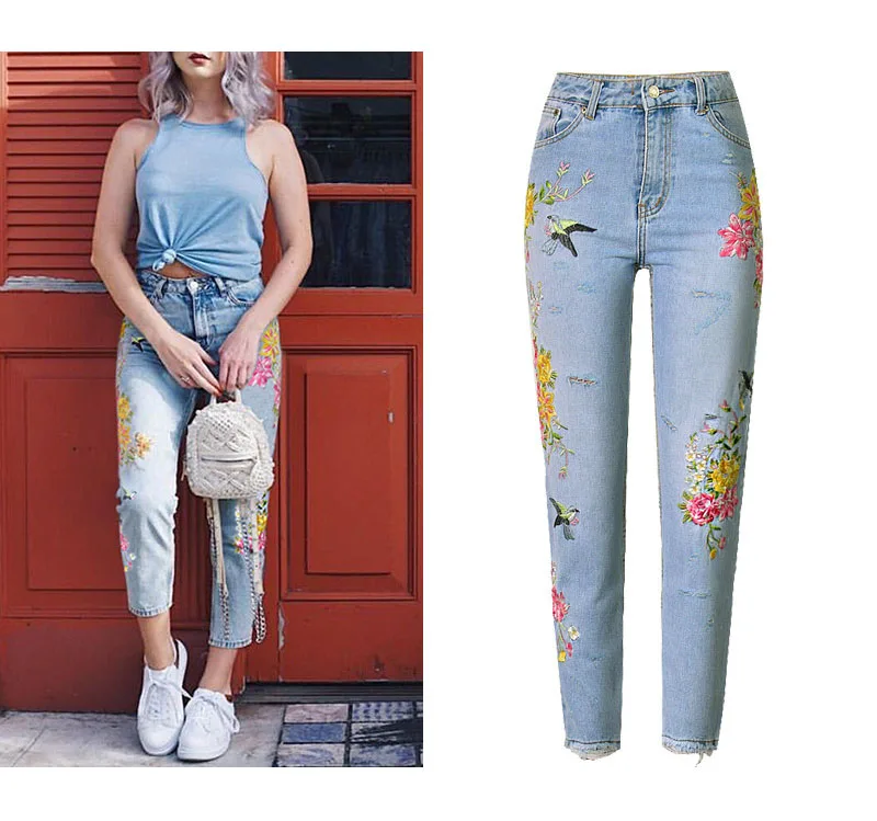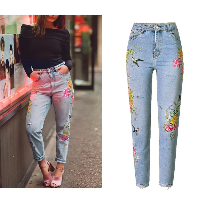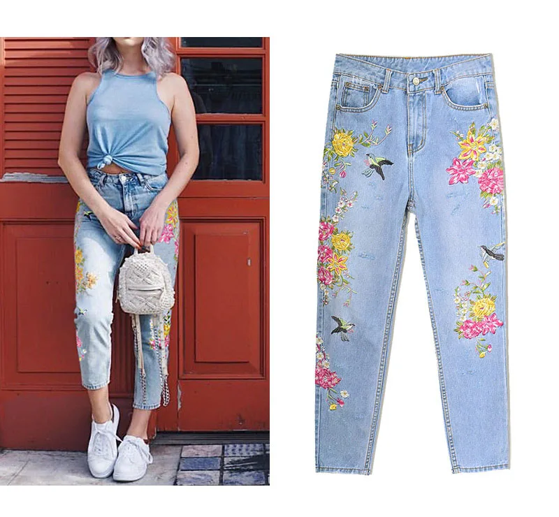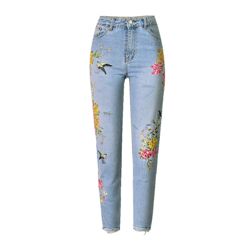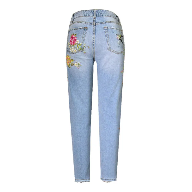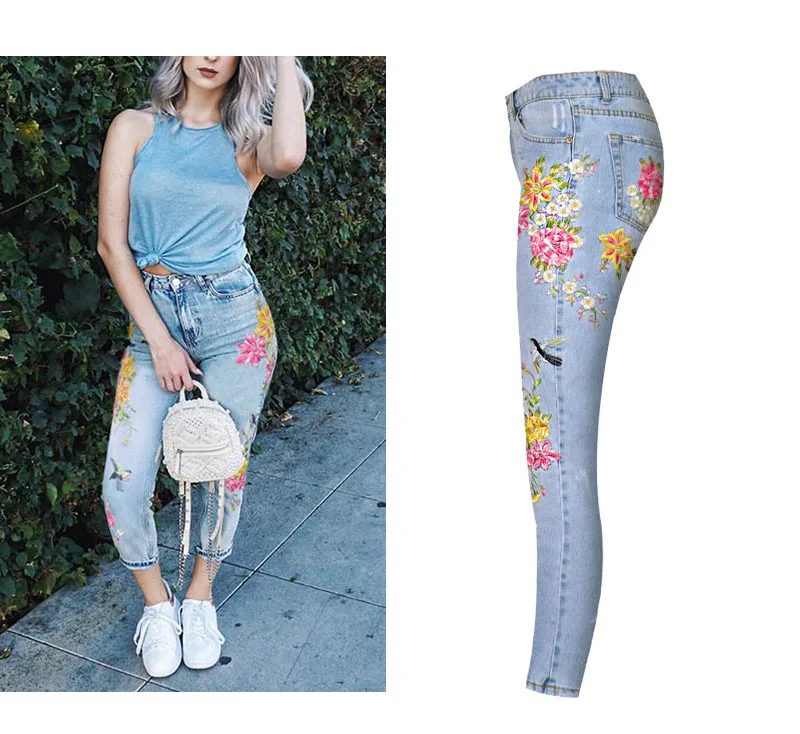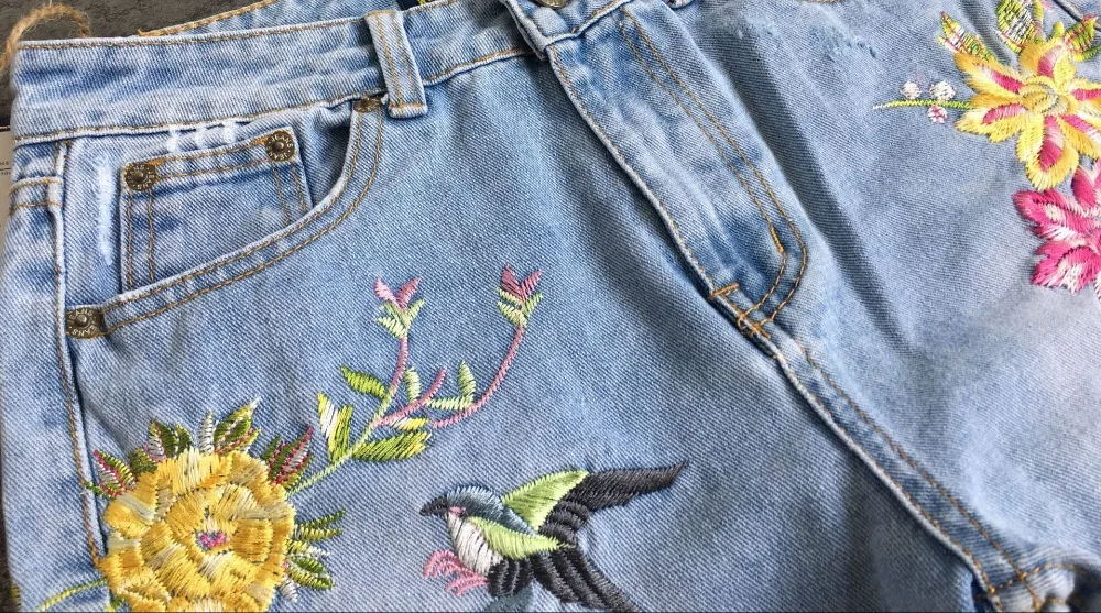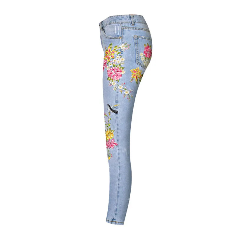 Item:3D Floral Embroidery Denim Pants