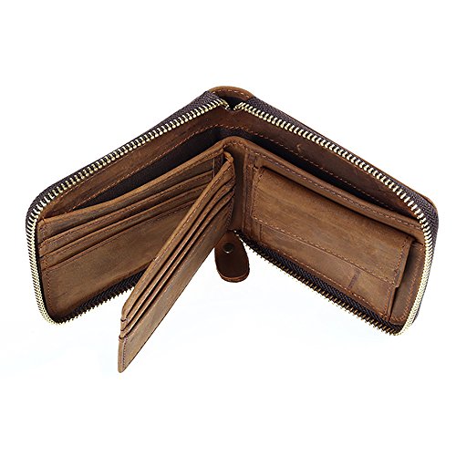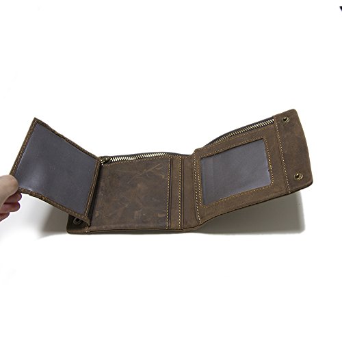 -. Feature : Hand-made of 100% Genuine Crazy Horse Leather, which has natural and smooth feeling. / This kind of leather will become newer and more beautiful when the time pass through and after more times you use. / The wallet looks vintage, elegant and luxury, best gift for men. / Size: 4.3" x 3.7" x 0.78"(11cm x 9.5cm x 2cm). 6 card slots, 1 window display, 1 long slots, 1 coin bag / We guarantee the quality of our products.Your satisfaction is what we are after . Just try it. If you are not satisfied with our products, You do not need to return the item back to us, we also promise 100% money back and replacement during 90 days.