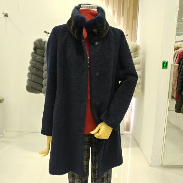 리얼밍크퍼 하이 네크라인이 모던한 무드를 자아내는 본 제품은