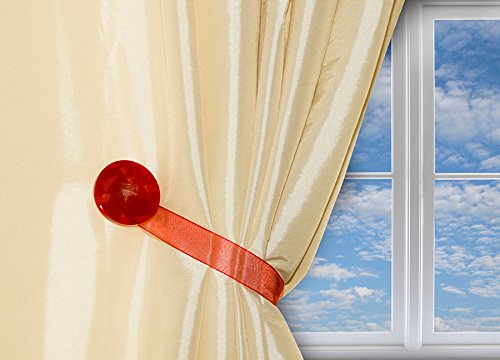 The Diamond Collection curtain clips are creatively designed and styled magnetic discs that sport a tie-back strip in the middle. The tie-back wraps around the curtain or drape and the magnetic halves connect together holding the curtain in place without having to be connected to a wall.