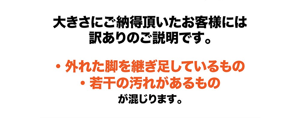 外れた脚を継ぎ足しているもの、若干の汚れがあるものが混じります。