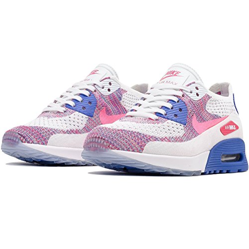Nike Women's Wmns Air Max 90 Ultra 2.0 Flyknit, WHITE/RACER PINK-MEDIUM BLUE