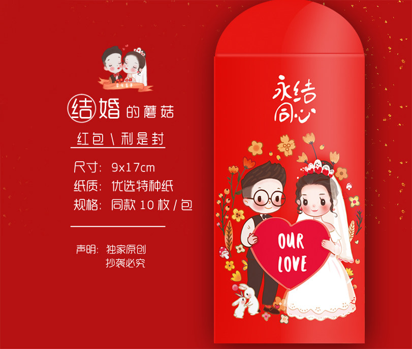 创意个性结婚礼金卡通用大码红包袋 原创喜庆可爱高档婚庆利是封