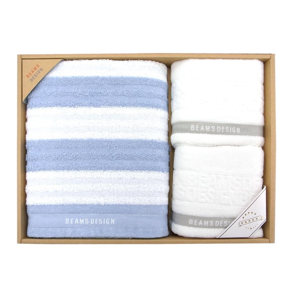 毛羽の発生を抑制した環境にも人にも優しいフルフィーコットンを使用したタオルです。 製造国:ベトナム 素材・材質:綿100% セット内容:フェイスタオル×2(約34×75cm)バスタオル×1(約60×120cm) ※サプライヤー直送品 ご注文後3~4営業日後の出荷となります【商品名】BEAMS DESIGN ロゴボーダー タオルセット 51-3039500-B