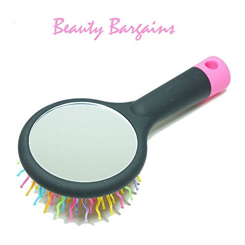 2 in 1 Mirror and Brush For on The Go - Colorful Bristles, De-Tangle In Seconds (1 Pack, Black)