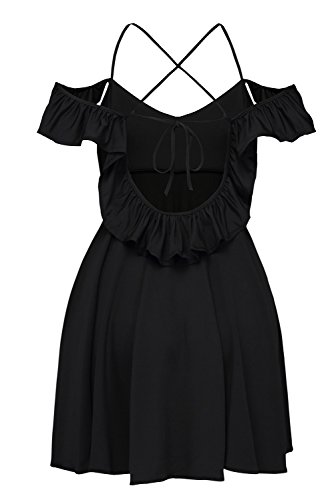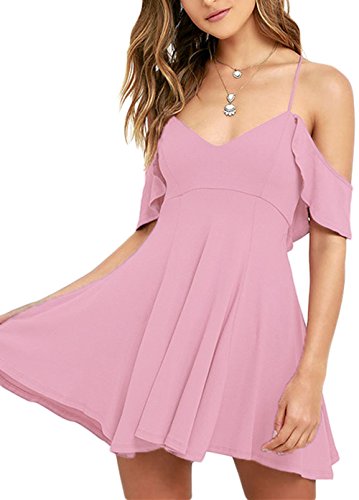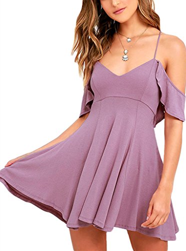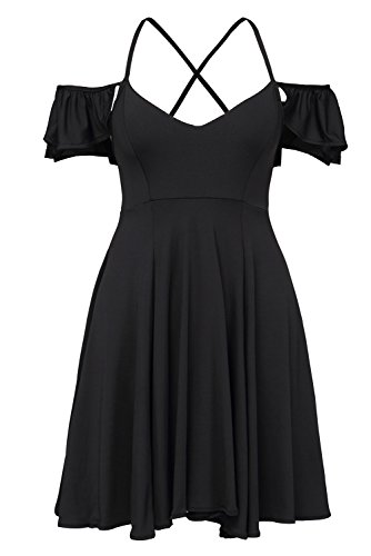 Ruffled shoulder straps support a darted triangle bodice and frame a low back with lace-up ties, you can adjust for a perfect fit. Jersey knit skater skirt has an unforgettable bounce and sway. It¡¯s fit well for most shapes and has a good slimming effect, feel adorable and alluring in this flared dress.Feature