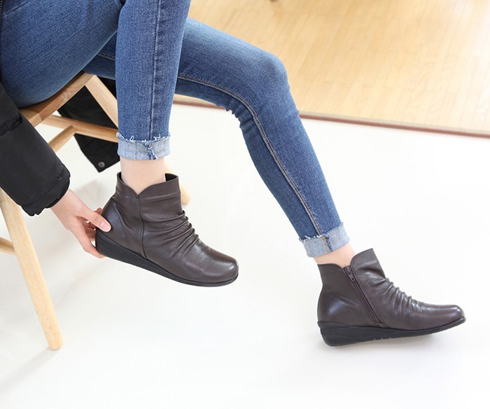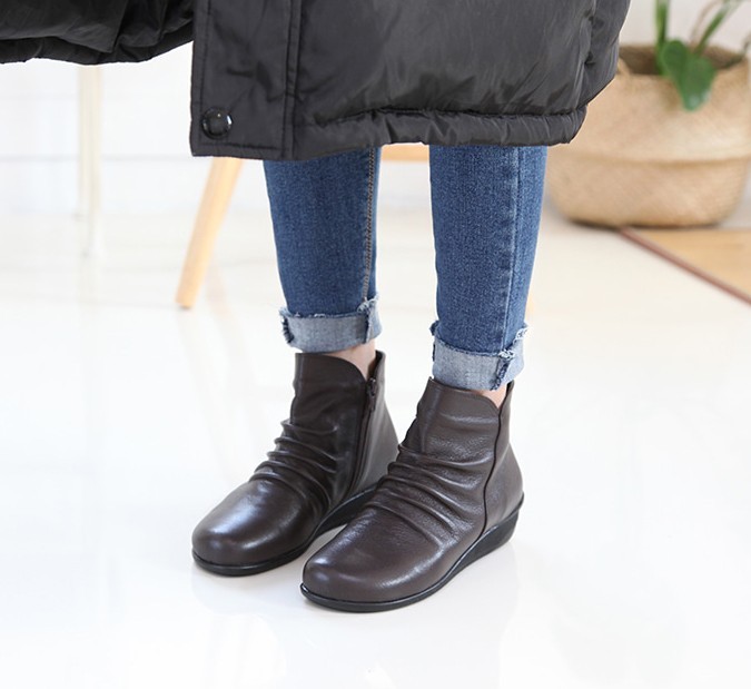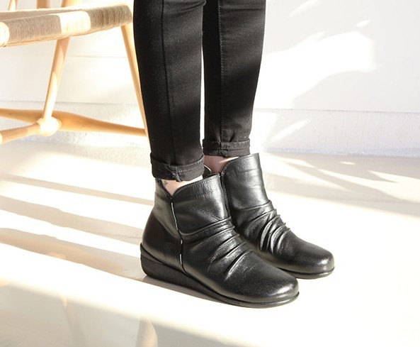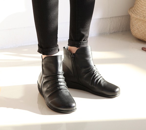 商品名:ショートブーツ レディース フラットヒール ペタンコ 本革 レザー 2017 秋 冬 ファッション 靴 婦人靴