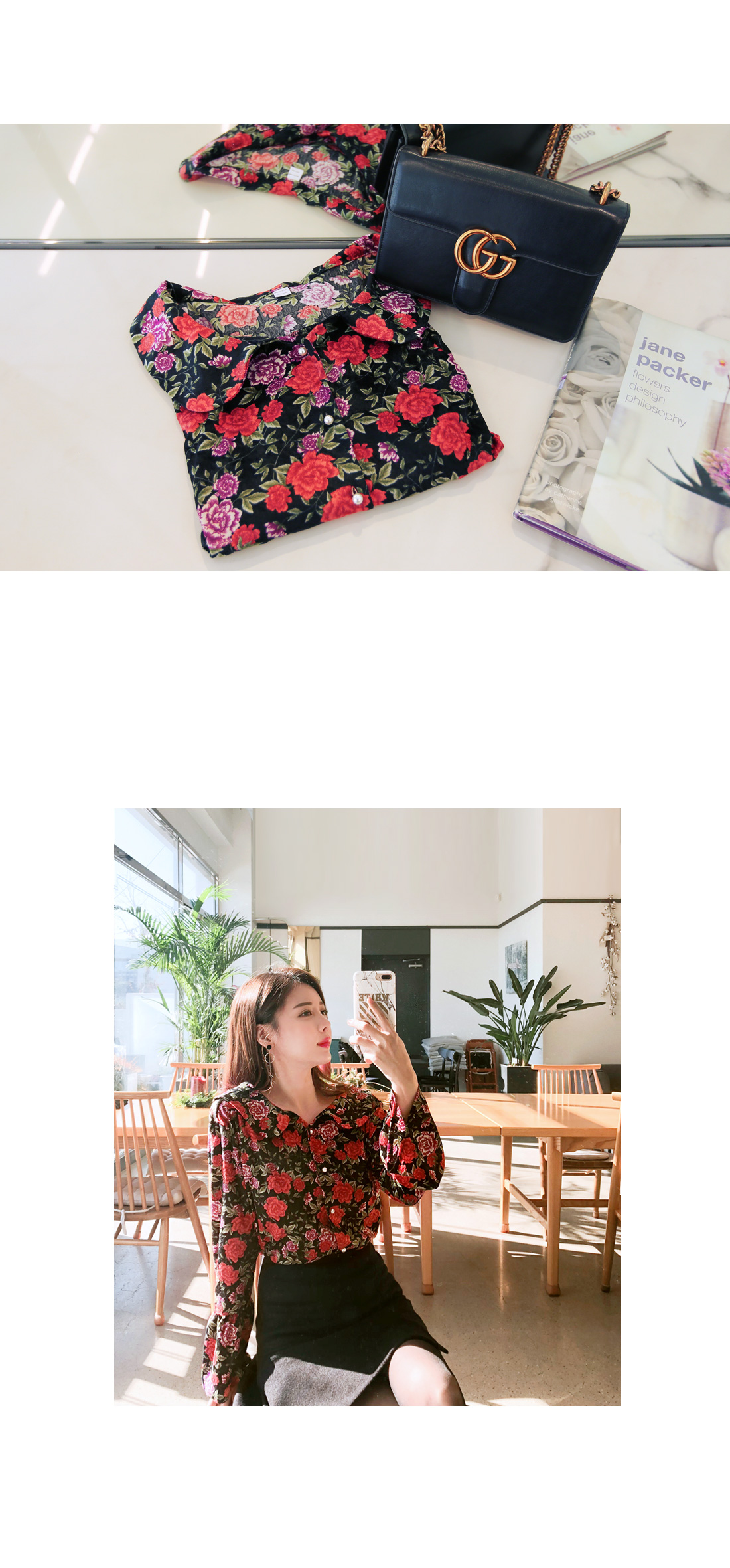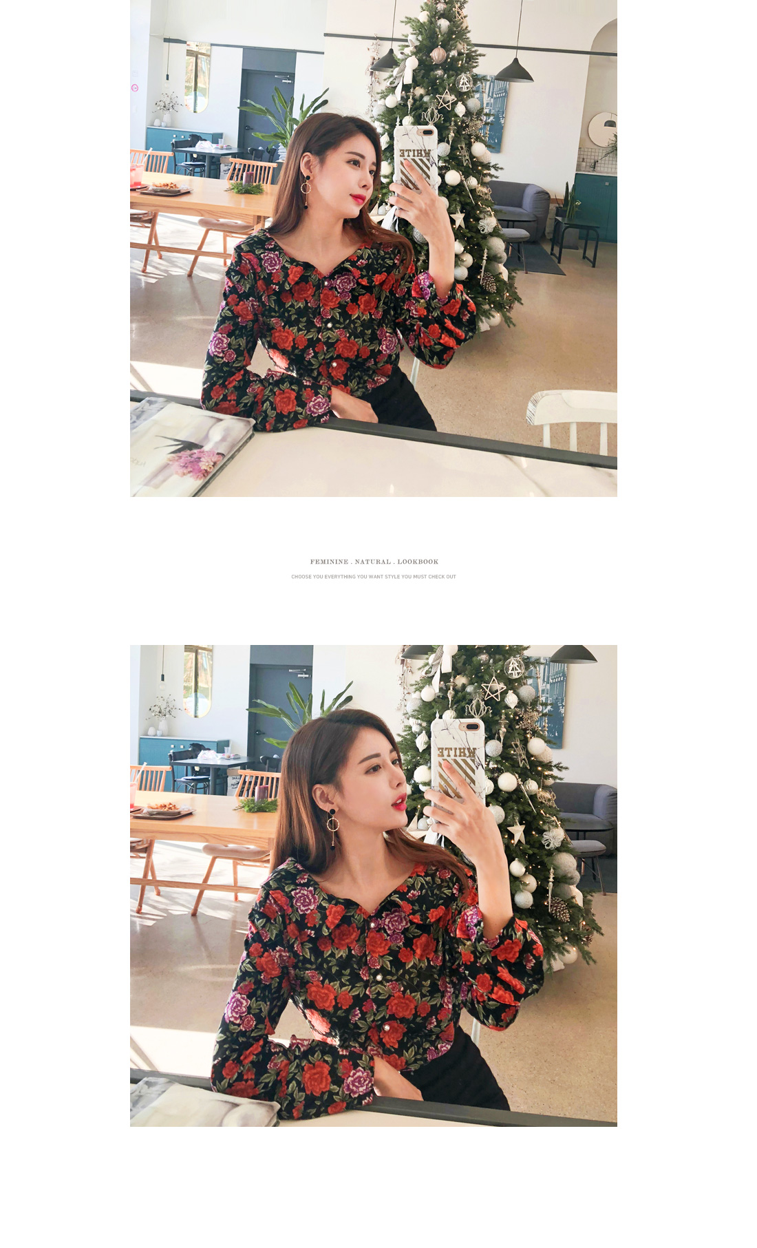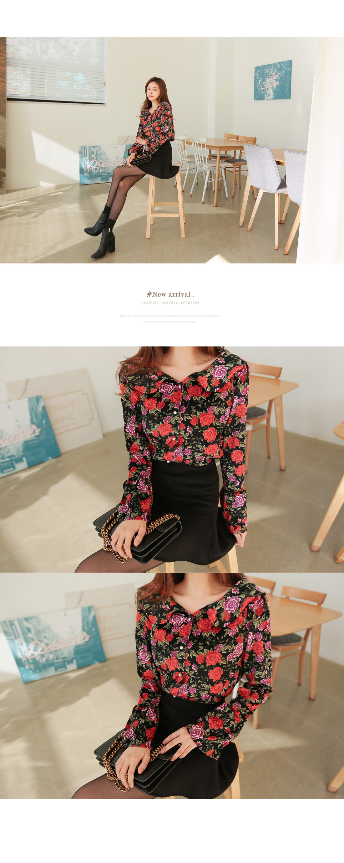 화려한 플라워 패턴이 여성스러운 블라우스랍니다.