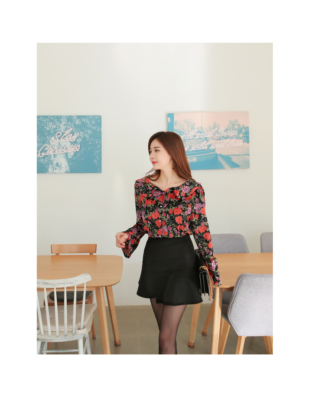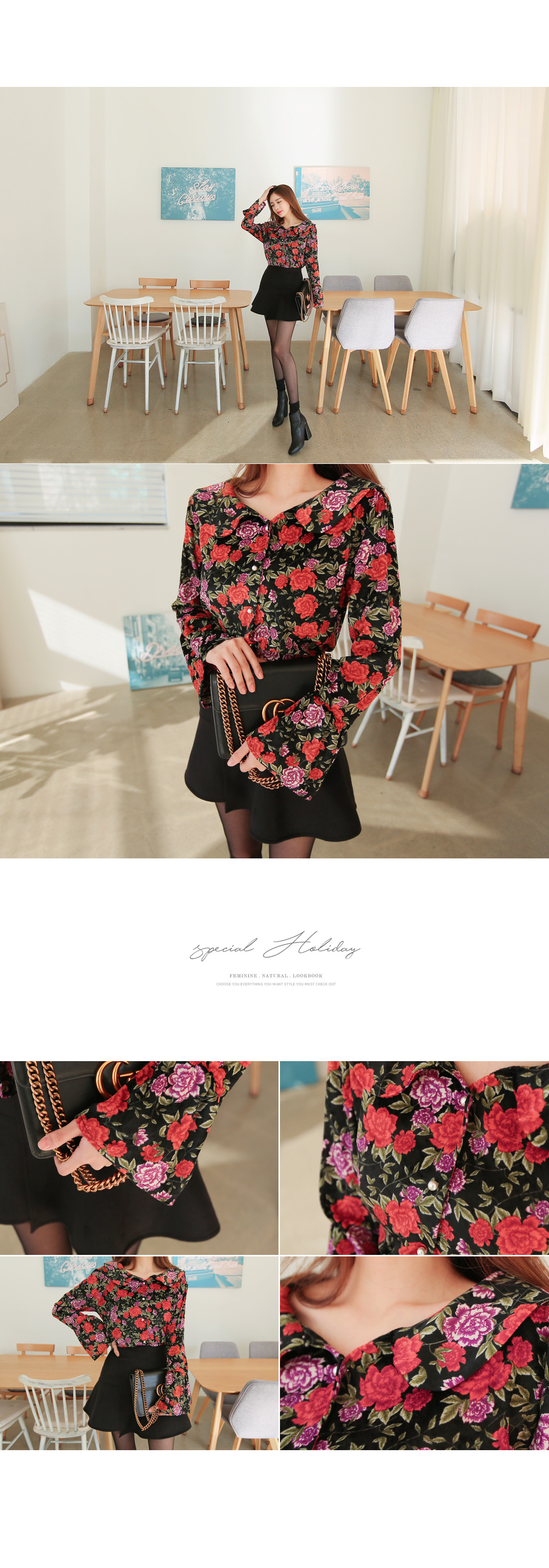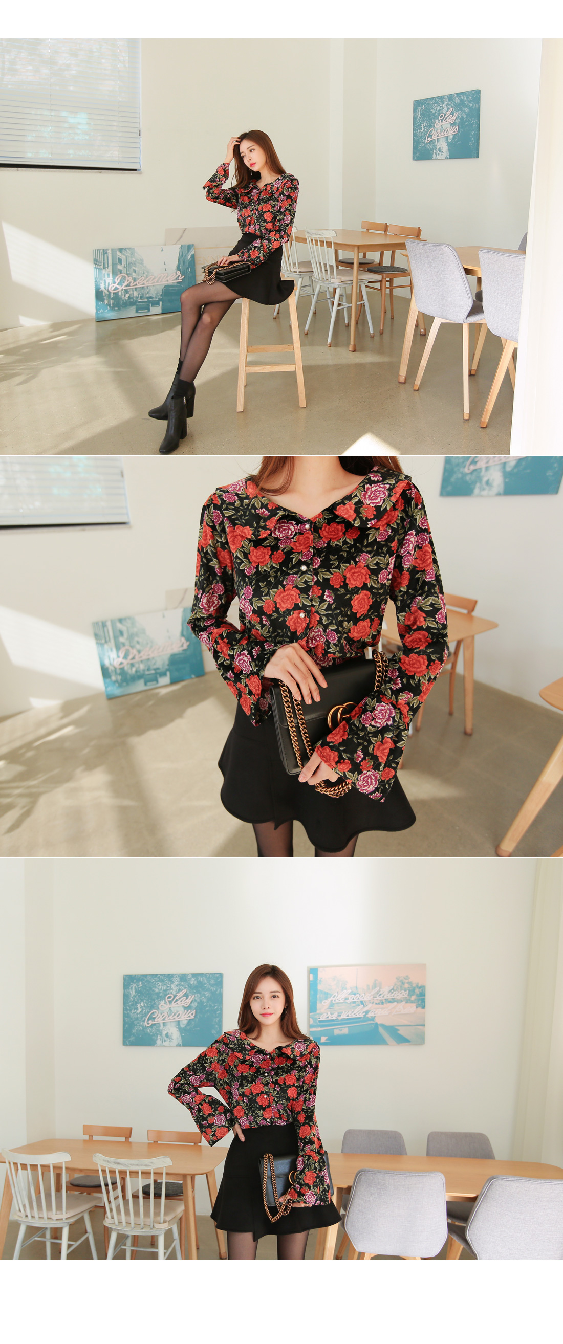 화려한 플라워 패턴이 여성스러운 블라우스랍니다.